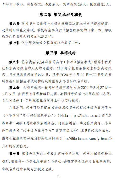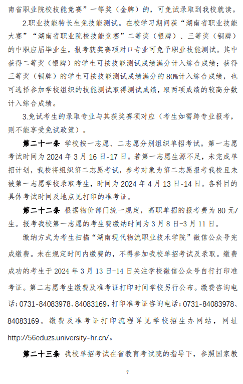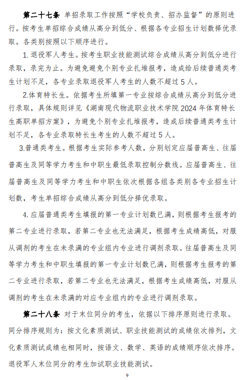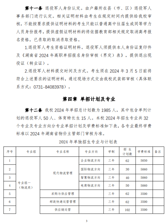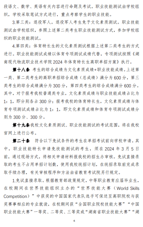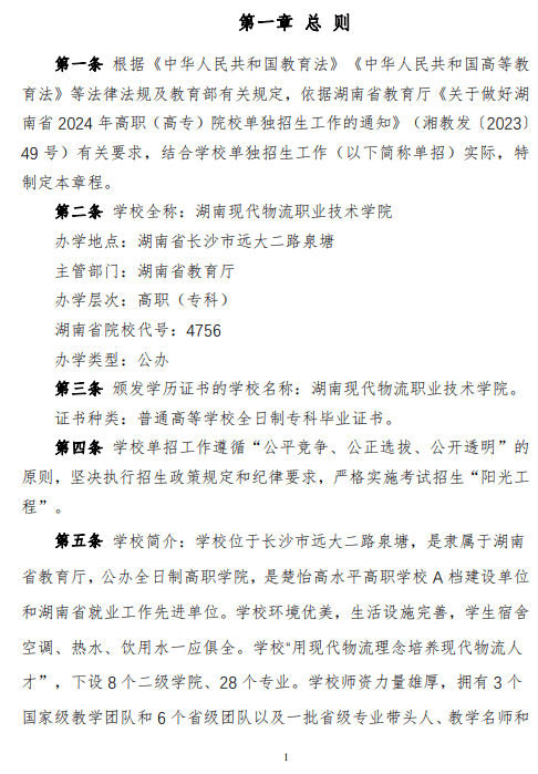 湖南现代物流职业技术学院2024 年高职单招章程